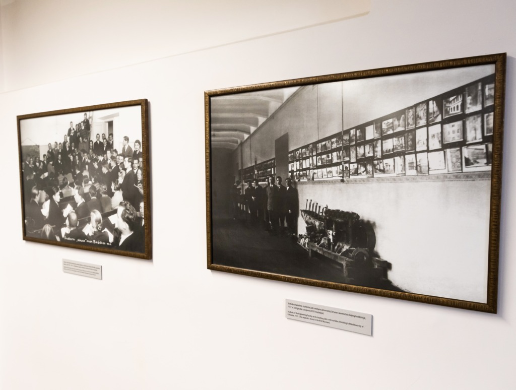 Exposition also perpetuates the University’s lecturers and graduates, who made direct contributions to the development of the state: signatories of the Acts of Independence of 16 February and 11 March, presidents, prime ministers and ministers: assoc. prof. Antanas Smetona, prof. Augustinas Voldemaras, prof. Pranas Dovydaitis, Kazimieras Šaulys, Mykolas Biržiška, Steponas Kairys, assoc. prof. Leonas Bistras, Antanas Tumėnas, prof. Petras Leonas, Vladas Jurgutis, prof. Vytautas Paliūnas, assoc. prof. Antanas Karoblis, assoc. prof. Povilas Varanauskas and lecturer Algirdas Patackas, KTU Honorary Doctors assoc. prof. Bronislovas Lubys and Algirdas Mykolas Brazauskas. Exposition reveals their values and thoughts, their approach to the state, nation, language and science.