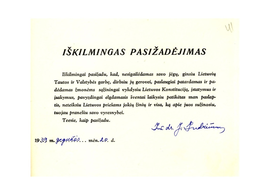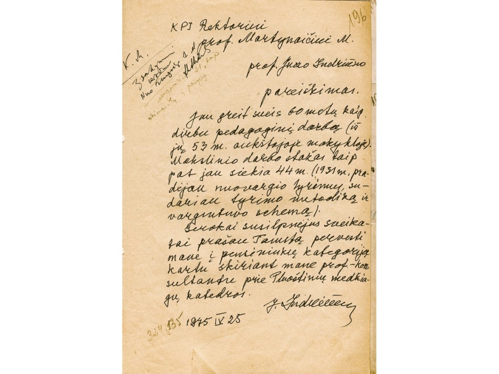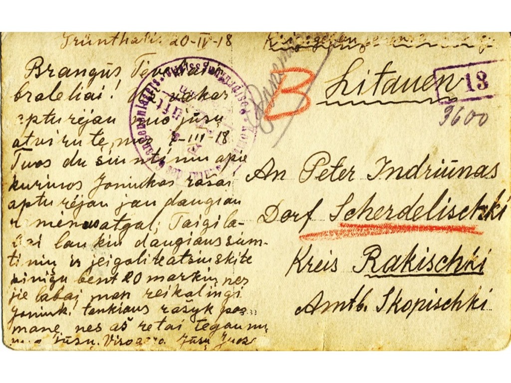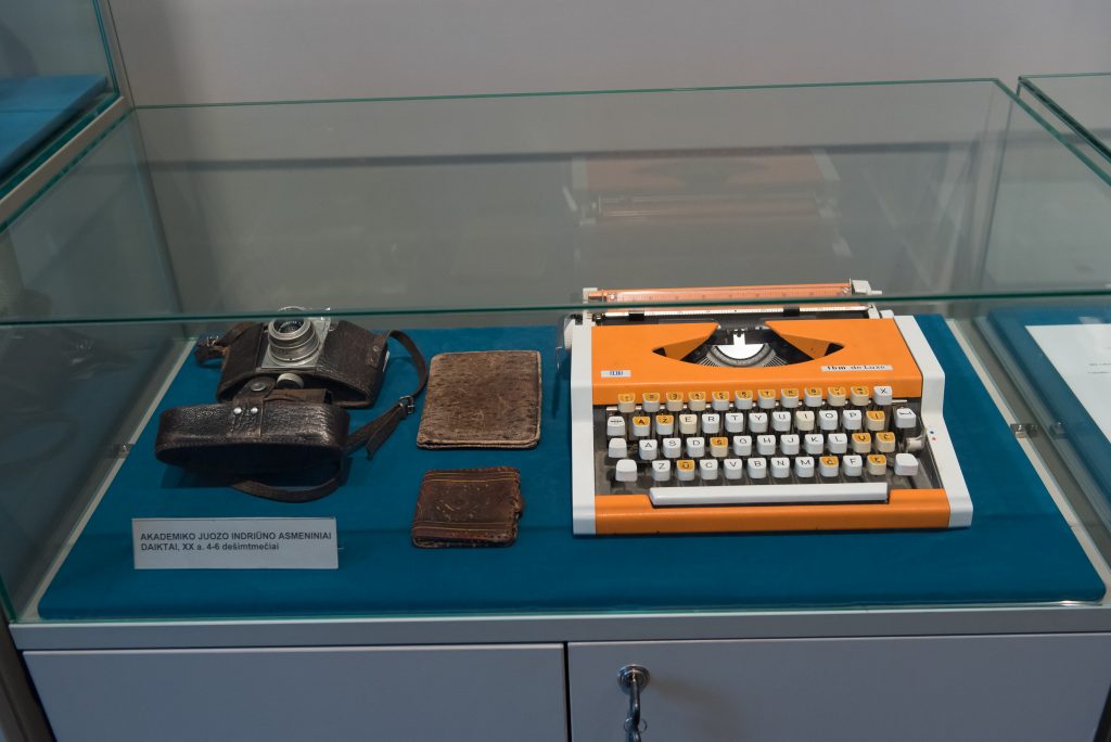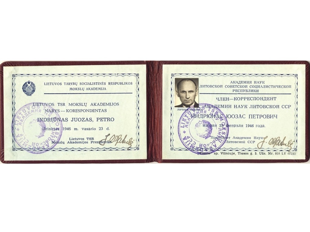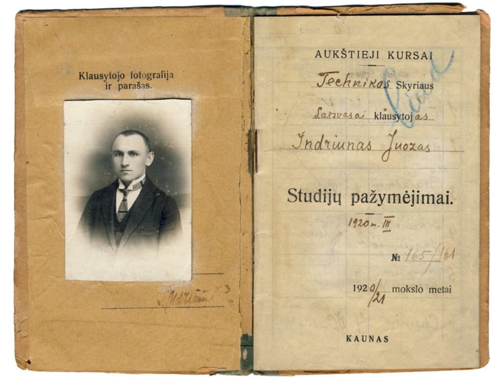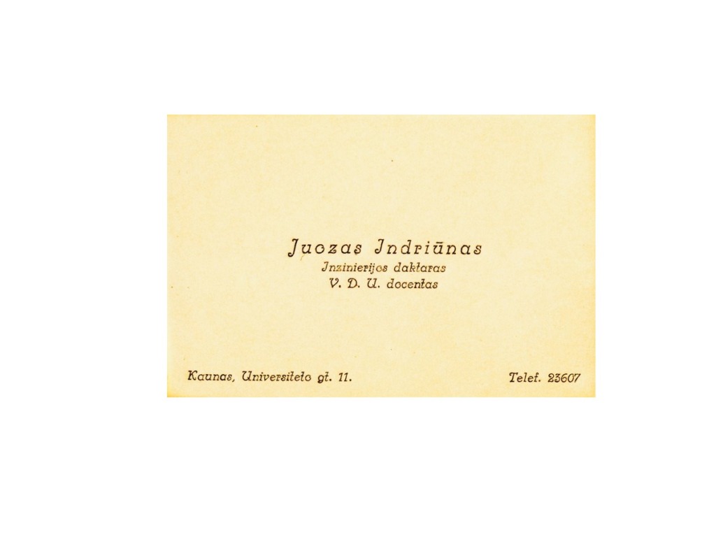 J. Indriūnas’ path to science is evidenced by personal documents that have found their way into the museum: a certificate of attendance as an auditor of advanced courses, which was quite rare in Lithuania in 1920–1921, the first doctoral dissertation in technical sciences defended at Vytautas Magnus University with the beautiful Lithuanian title “Vilnų plaukeliai lankstomi pavargsta” (The Waves of Vilnius Grow Weary), a copy of his diploma, and more. Among them is a special photograph-postcard taken in the spring of 1918 at the Gruntal prisoner-of-war camp in Germany. In the photograph, J. Indriūnas is pictured sitting on a bench wearing prisoner’s clothes and clogs, with the prisoner number “56” placed next to the bench, holding a copy of the newspaper Lietuvos aidas in his hand. It has been determined that this is the March 26, 1918 issue of Lietuvos aidas, which contains the article “Lithuania – an Independent State.”The article reports that on March 23, a delegation authorized by the Lithuanian Council presented the German Chancellor with a notification of the Act of Independence proclaimed by the Lithuanian Council, requesting recognition of the Lithuanian state. On the other side of the photograph is a postcard in which J. Indriūnas writes to his parents and brothers on April 20, 1918, about two parcels he has received and asks them to send more parcels and money, which he desperately needs. The postcard bears witness to one of the most difficult trials of J. Indriūnas’ life – his arrest and imprisonment in a German prisoner-of-war camp during World War I. He writes about this in his memoirs, published in 1996. In the autumn of 1915, J. Indriūnas established a Lithuanian primary school in the village of Piniava near Panevėžys, along with courses for adults and a choir, and organized performances. While still a student, J. Indriūnas joined the secret socialist organization Aušrininkai (named after the magazine Aušrinė), and as a teacher he established a secret group of the Progressive Youth Union of Aukštaitija, published the newspaper Liuosas kelias, and published and distributed leaflets. For one proclamation urging people to hide from being drafted into the occupiers’ labor battalions, J. Indriūnas was arrested in December 1916, imprisoned, and later sent to the Gruntal prisoner camp. He escaped with a friend, but after three days he was returned to the same camp. Living in the prison camp, J. Indriūnas founded a primary school for his fellow Lithuanians who were illiterate or semi-literate. The Lithuanian prisoners received some food and books from the Lausanne Lithuanian Committee, established in Switzerland to help victims of the war. J. Indriūnas did not return to Lithuania until the autumn of 1918.