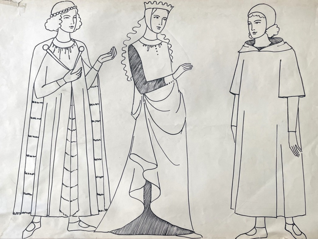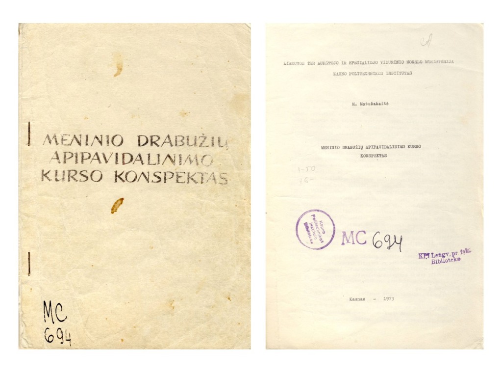 Marija was born on 9 March 1924 in Vareikonys Manor (Babtai Volost). Marija’s parents were tenants of this manor. After graduating from Kaunas Gymnasium VIII in 1941, she was admitted to the Architecture Department of the Faculty of Civil Engineering at Vytautas Magnus University (VMU), but when the Nazi army occupied the University’s buildings on 17 March 1943, her studies were interrupted, and Marija did not complete them until 1948. After graduation, she was assigned to work at the Architectural Design-Planning Workshop at Vilnius City Executive Committee, and later at other design institutions, where she worked as chief architect and group leader. In addition to her regular work, Marija was actively involved in architecture, furniture design and fashion design competitions. In 1958, she took part in the Soviet Union’s Multi-Purpose Clothing Drawing Contest, where her work was awarded a prize. From 1961 to 1963, M. Matušakaitė worked as the art director of the Vilnius Model House, and in 1961 she became a member of the editorial board of the first Lithuanian fashion magazine “Banga”. M. Matušakaitė became interested in the studies of art history and was admitted to art history studies at Vilnius Art Institute in 1959. After graduating externally with honours in 1965, she began working as the principal artist at the “Fashion” factory in Kaunas. From 1963 to 1983, she worked at the Department of Leather and Textiles of the Faculty of Light Industry at Kaunas Polytechnic Institute (KPI). While teaching at KPI, Marija began to regularly participate in expeditions in Lithuania organised by the Ministry of Culture, collecting data on valuable works of art, publishing articles about them in the Lithuanian press and participating in scientific conferences. In 1970, she defended her dissertation “Sculptural Tombstones of Lithuania in the 16th and 17th Centuries” at the Lithuanian Historical Institute as a Doctoral Candidate of Art History.