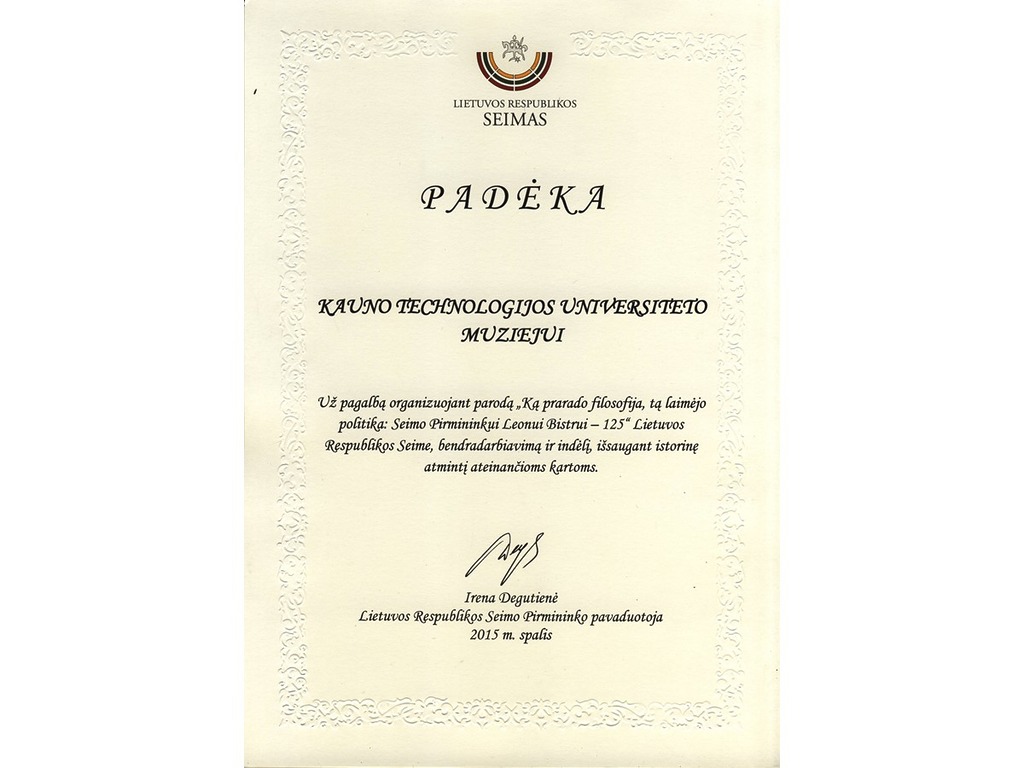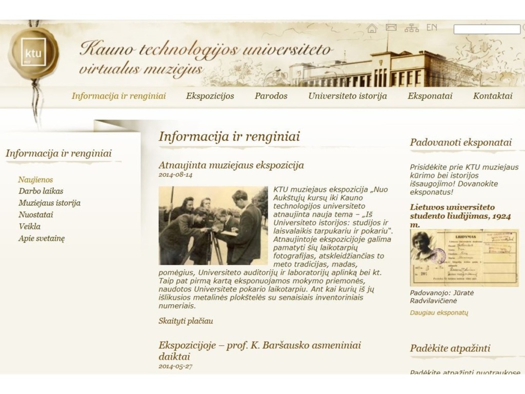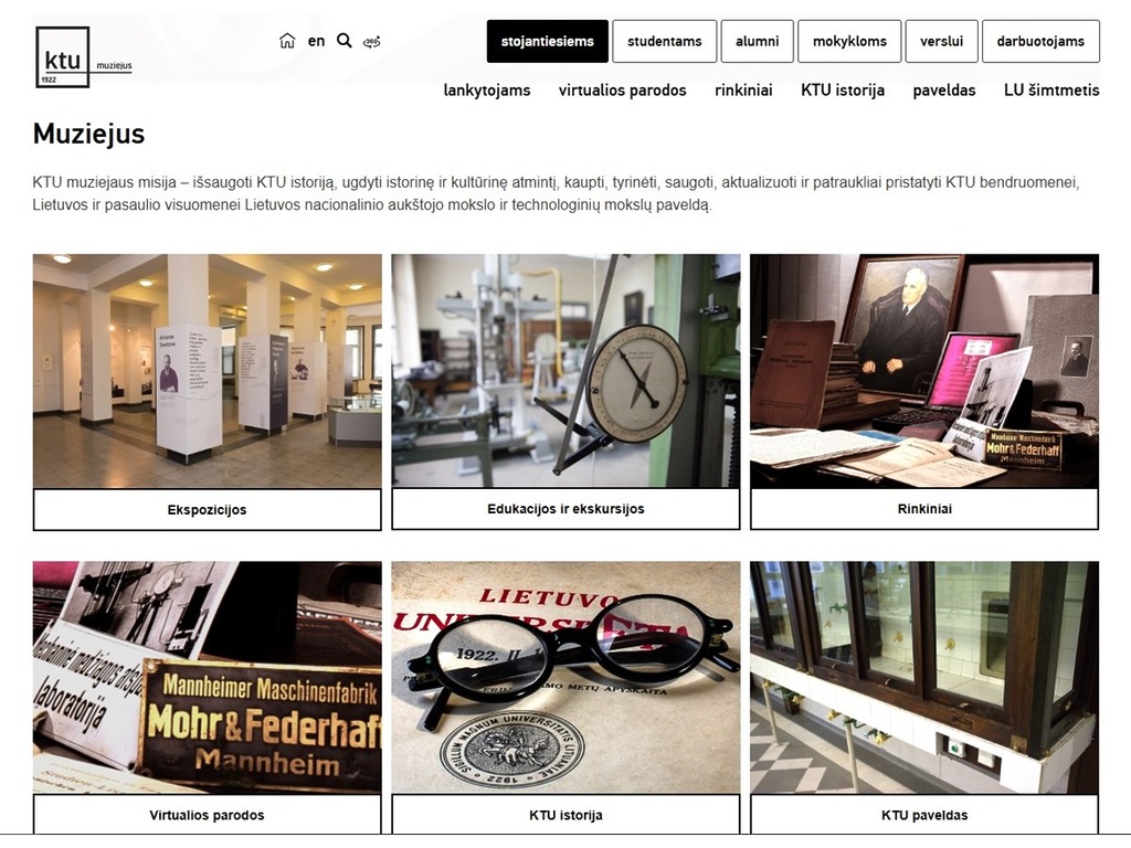 In 1990, after Lithuania regained its independence, Kaunas Polytechnic Institute became Kaunas University of Technology. In 1991, Laimutis Vištakis (1928–2008) became the first full-time curator of KTU Museum. In 1998, a new museum exhibition, created by Assoc. Prof. Juozas Sveikata, was opened on the third floor of KTU Administrative Building. On 25 November 2008, an internal division, the Museum, was established in KTU Public Relations Department. On 2 December 2008, Audronė Veilentienė began working as the Head of the KTU Museum. On 27 March 2009, KTU Museum was legalised as an institutional museum after its statutes were approved by the order of the rector. The Museum’s subordination has changed several times: it belonged to KTU Cultural Centre, the Image Formation Centre, the Library, and currently it is subordinate to the Department of Research Affairs. Until 2018, the Museum had only one full-time employee – the head of the Museum. Since 2016–2017, the Museum’s communications were managed by Cultural Project Manager Žilvinas Rinkšelis. In 2018, Jonas Klėmanas, a long-time KTU photographer, began working at KTU Museum, and in 2024, Museum Curator Karina Lazauskienė joined the team. Since the end of February 2025, she has been substituted by Karolis Kumža. In 2011, KTU Museum became an associate member of the Lithuanian Museum Association, and in 2015, it became a user of the Lithuanian Integral Museum Information System (LIMIS). The Museum is responsible for preserving and promoting the historical heritage of KTU. The main supporters and patrons of the museum are the leaders and members of KTU Veterans’ Club “Emeritus” and members of KTU community. Thanks to Prof. Antanas Žiliukas, the Mechanical Material Resistance Laboratory of the University of Lithuania, founded in 1923, was preserved and included in KTU Museum.