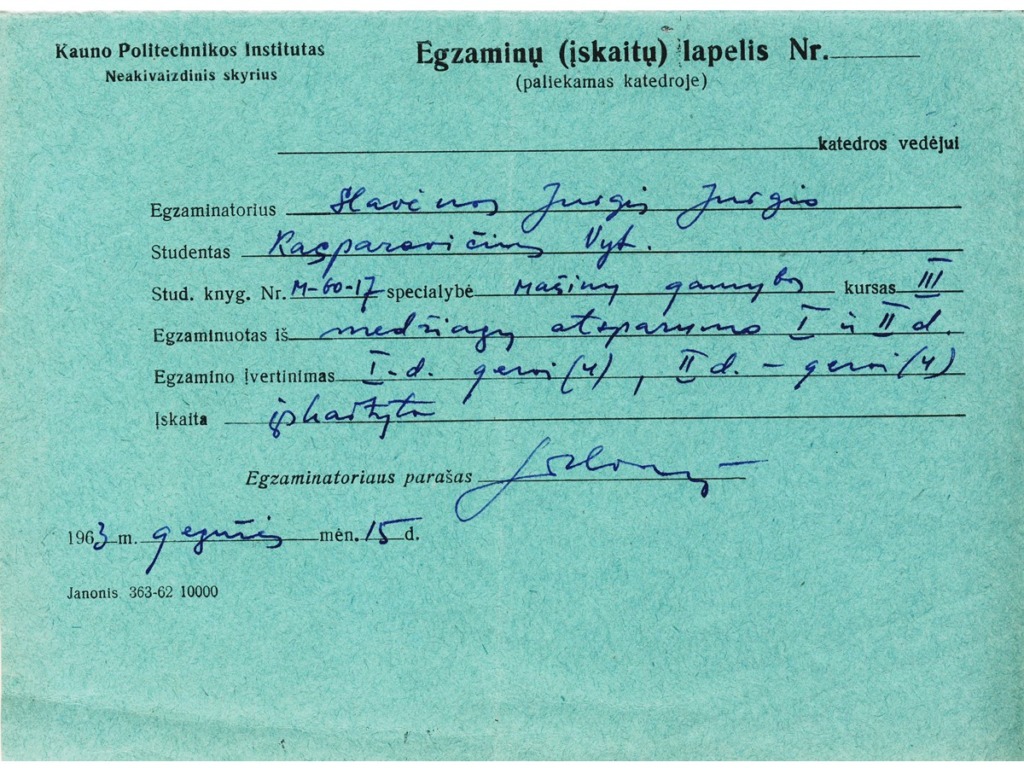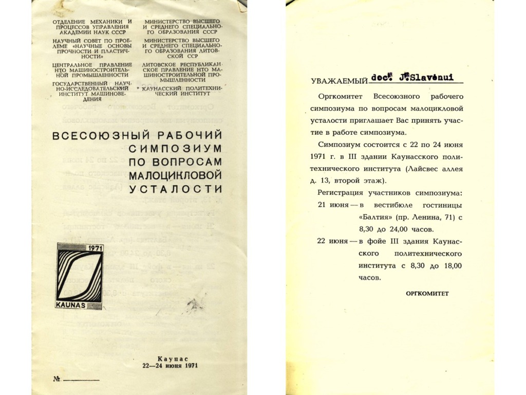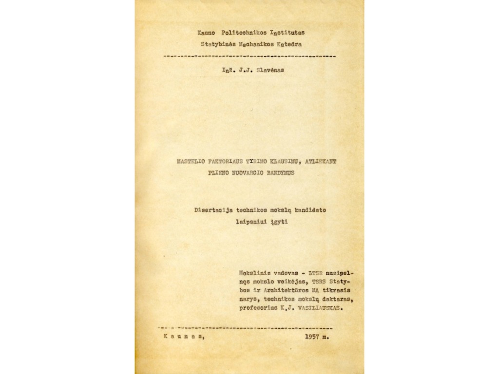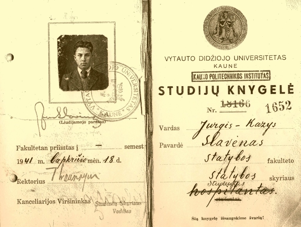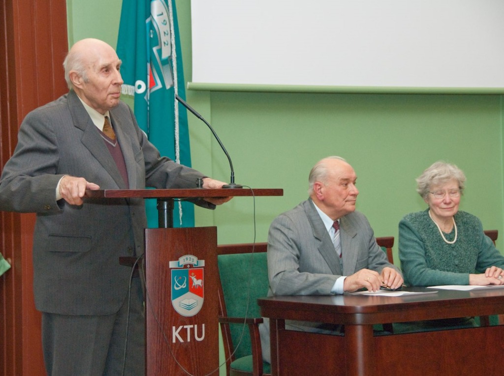 After Lithuania gained its independence, Kaunas Polytechnic Institute became Kaunas University of Technology on 31 October 1990. Until 1993, Prof. Jurgis Slavėnas worked at the Department of Material Resistance of KTU Faculty of Mechanical Engineering. After his retirement, Prof. J. Slavėnas was actively involved in the activities of KTU Veteran Club “Emeritus” by heading the 12-person Historical Memory Preservation Group, which maintained a virtual calendar of KTU historical and commemorative dates and thus contributed to the preservation of the historical memory of KTU. In the monograph “From Higher Courses to Kaunas University of Technology, 1922-1997”, published in 1997, Prof. J. Slavėnas wrote an article “Students’ Scientific Work (SSW)”, and in 2005, the Publishing House “Technologija” published his publication “Department of Structural Mechanics, 1922-1962”. In the publication dedicated to the 15th anniversary of the Emeritus Club in 2018, Prof. J. Slavėnas wrote: