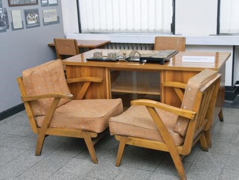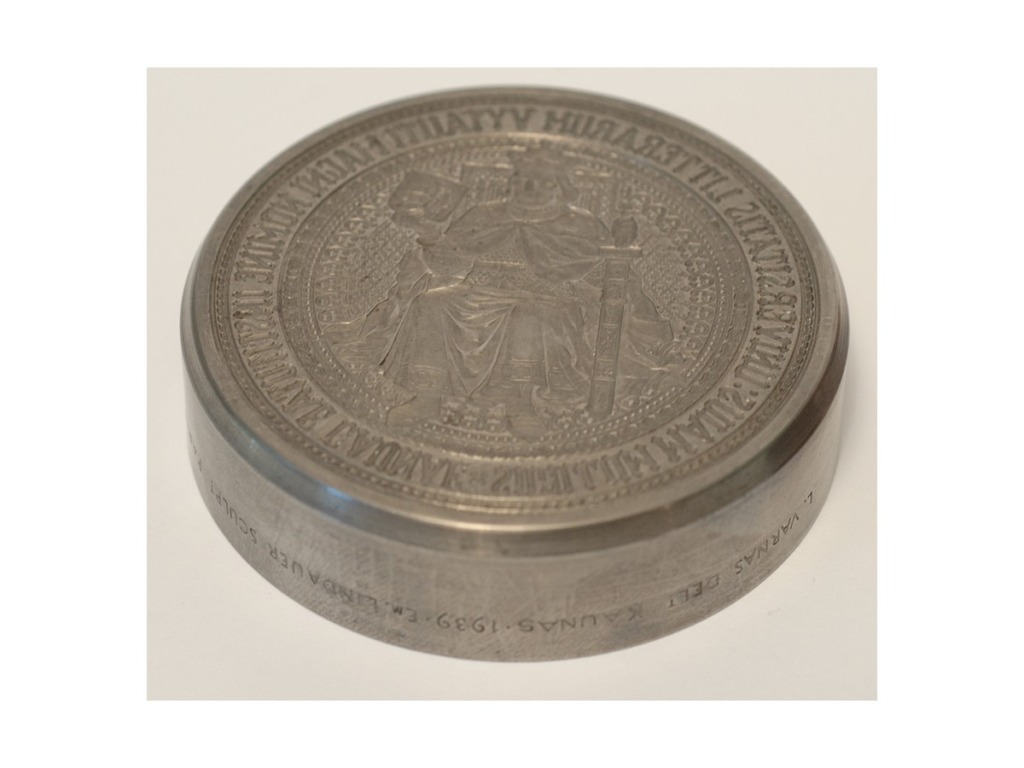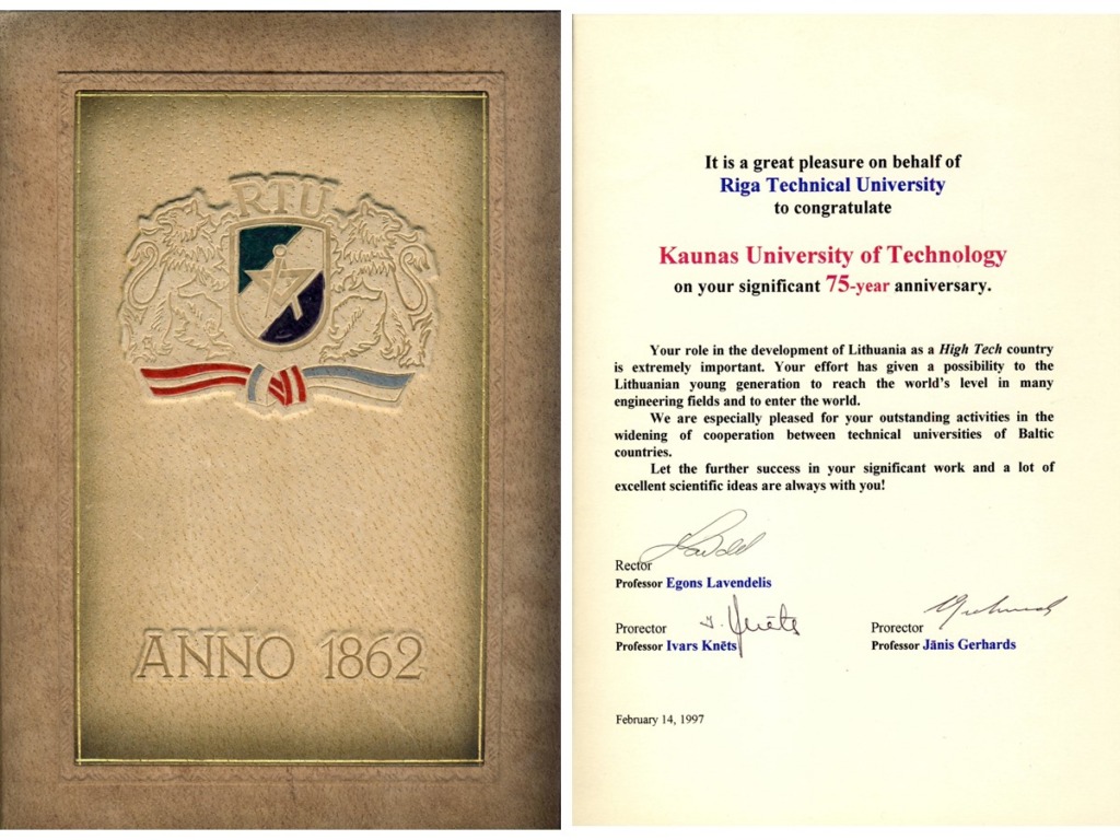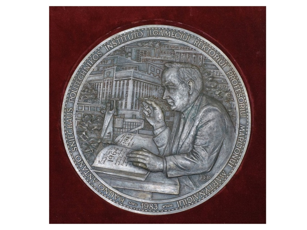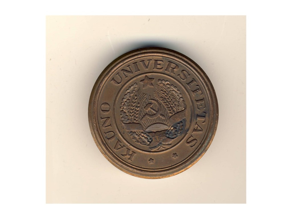 This part of the exhibition features exhibits that have survived from KPI Museum, established in 1965, including furniture from the office of Rector Prof. K. Baršauskas and a bas-relief of Prof. K. Baršauskas donated to KPI Museum by Sculptor Alfonsas Janulis. At Kaunas State Vytautas Magnus University, renamed Kaunas Polytechnic Institute since 1951, all celebrations and cultural events were filtered through the ideology, and atheism was forcibly imposed. This is reflected in the 1949–1950 university wall newspapers presented in the exhibition, which were part of the former KPI Komsomol Museum. However, books were written at KPI about the history of the institute, its faculties, departments, and library, whose roots can be traced back to the Higher Courses established in 1920 and the University of Lithuania founded in 1922, and anniversaries were celebrated solemnly. This is confirmed by the anniversary medals on display. Kaunas Polytechnic Institute was founded by professors and graduates of the University of Lithuania, who passed on their knowledge to younger generations, which is why the institute’s scientists won many awards in the Soviet Union and made numerous inventions. This section displays the photographs of the world’s first piezoelectric robots of six and nine degrees of freedom, created in 1980 by Prof. Kazimieras Ragulskis and Prof. Ramutis Bansevičius, a textile material thickness gauge called a “pukomatis”, created in 1974 by Leonas Veržbolauskas and Palmira Garunkštytė-Kunigėnienė, the first Lithuanian personal computer “Santaka”, created in 1988 by employees of KPI Departmental Electronic Computing Technology Laboratory. This part of the exhibition also features photographs of gifts from KPI leaders, athletic awards, and teaching aids.